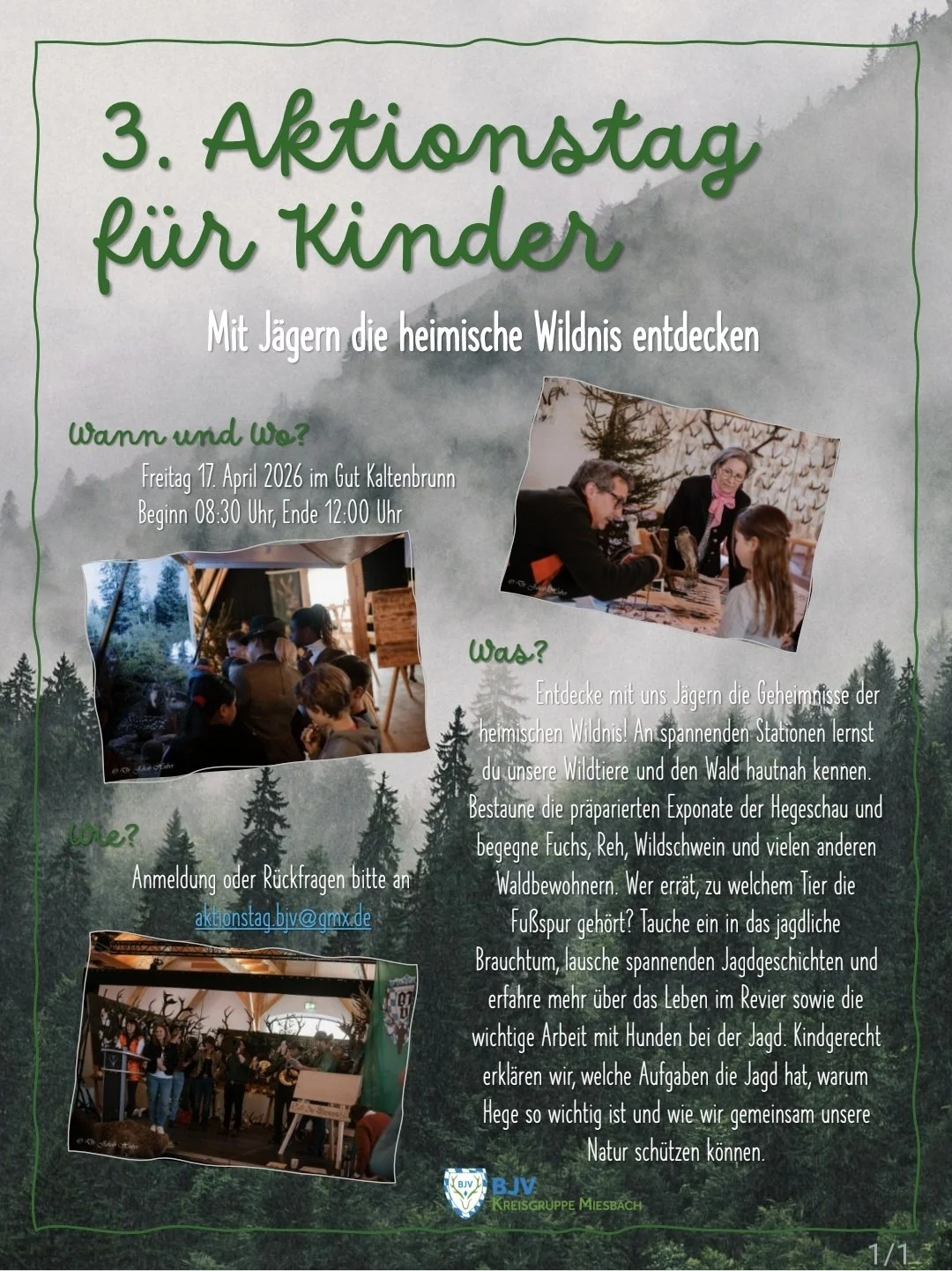Entdeckt mit uns Jägern die heimische Natur und die Wildnis am 3. Kinderaktionstag, am 17. April 2026 auf dem Gut Kaltenbrunn!